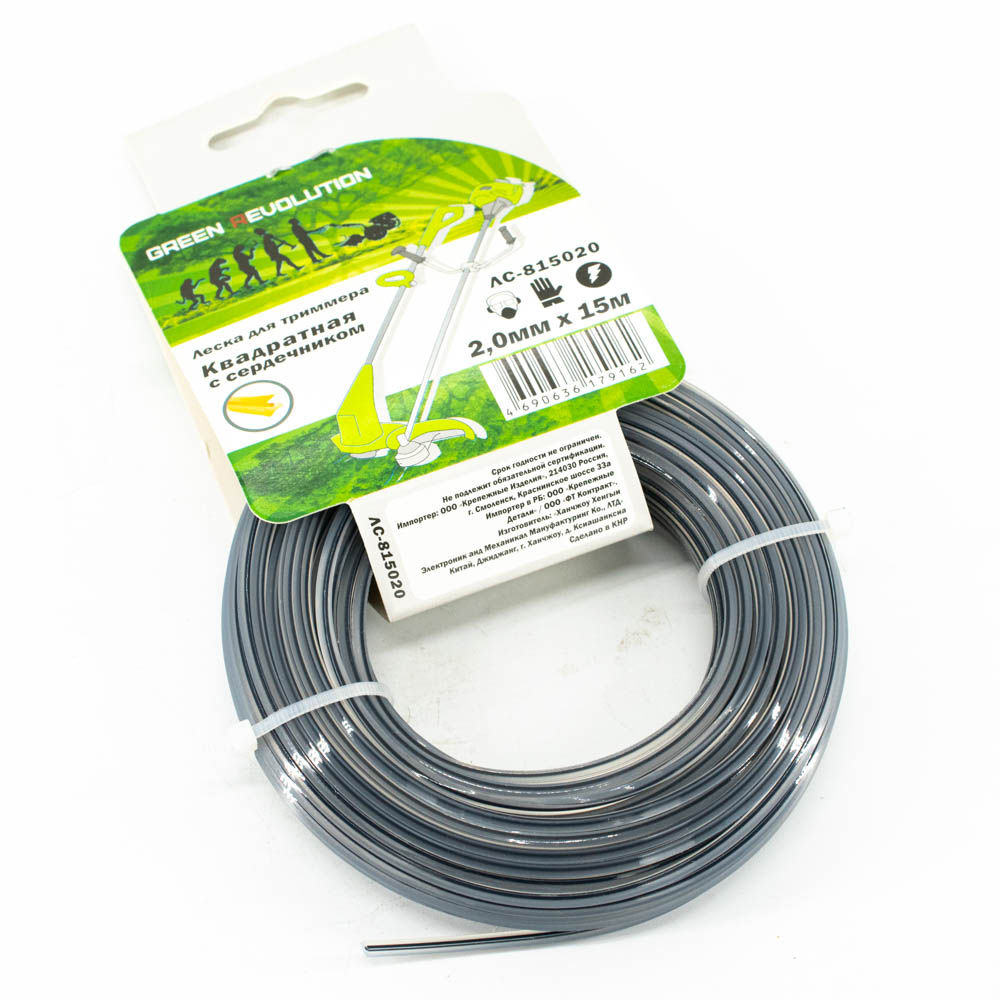 Леска Green Revolution для триммера 2,0х15м "квадратная с сердечником" (100% нейлон, сердечник упрочненный нейлон)