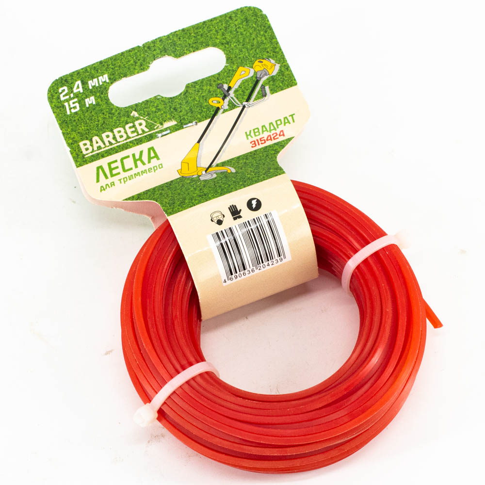 Леска "BARBER" для триммера d 2,4мм х 15м, сечение "квадрат"