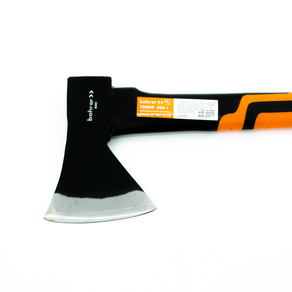 Топор Bohrer 600 г. рукоятка фибергласс 360 мм с резиновым покрытием (cталь 45 HRC 50-58)