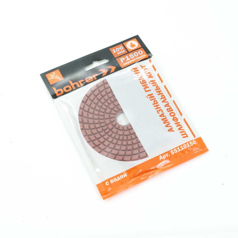 Круг Bohrer 100 мм Р1500 алмазный гибкий шлифовальный "черепашка" (с водой)