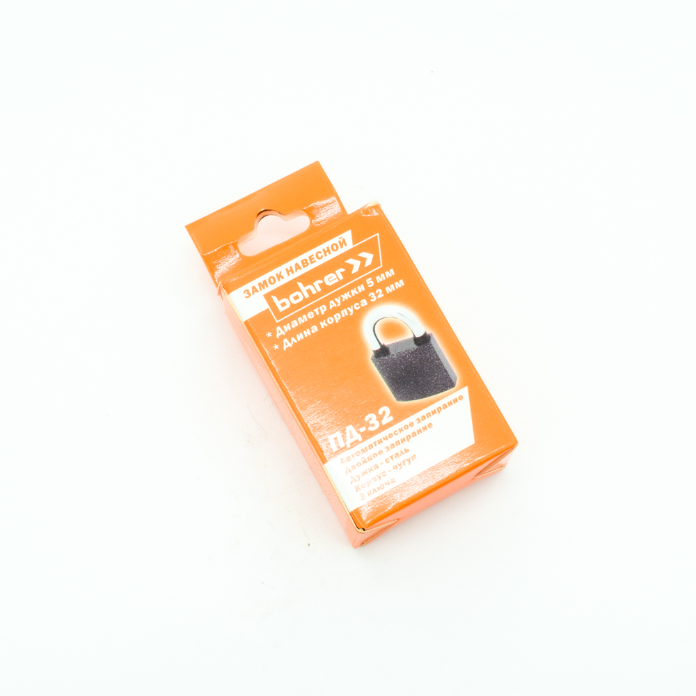 Замок навесной Bohrer ПД-32 (дужка сталь 5 мм, 3 ключа) (корпус чугун, резин. накладки на дужке) (с подвес)