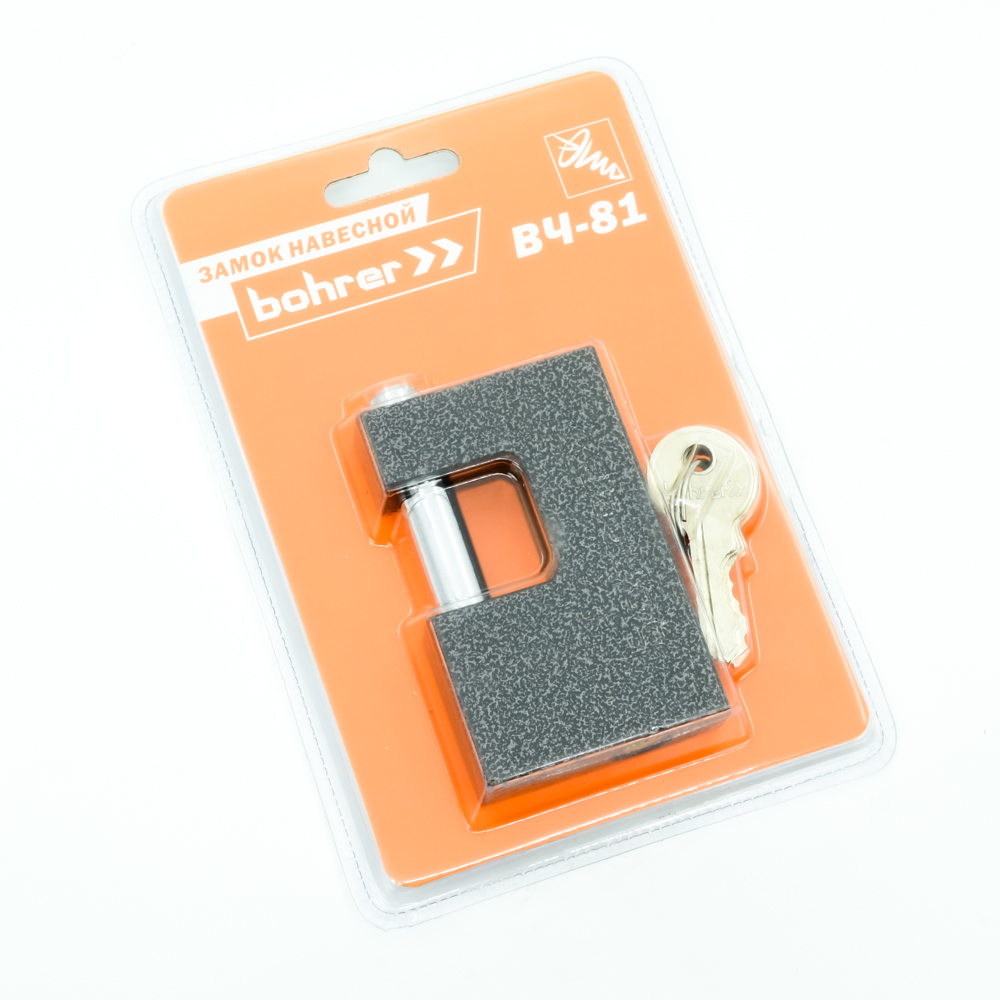 Замок Bohrer навесной ВЧ-81 с прямой дужкой (дужка 12 мм, 3 ключа) (81х18х52мм) (блистер)