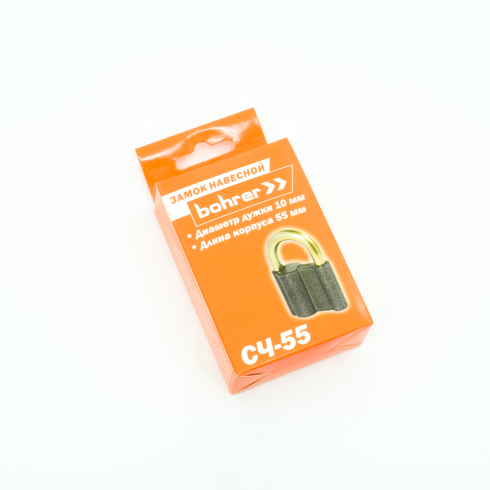 Замок Bohrer навесной СЧ-55 (дужка 10 мм, 3 ключа) (корпус 55 мм) (с подвесом)