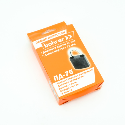Замок навесной Bohrer ПД-75 (дужка сталь 11 мм, 3 ключа) (корпус чугун, резин. накладки на дужке) (с подвес)