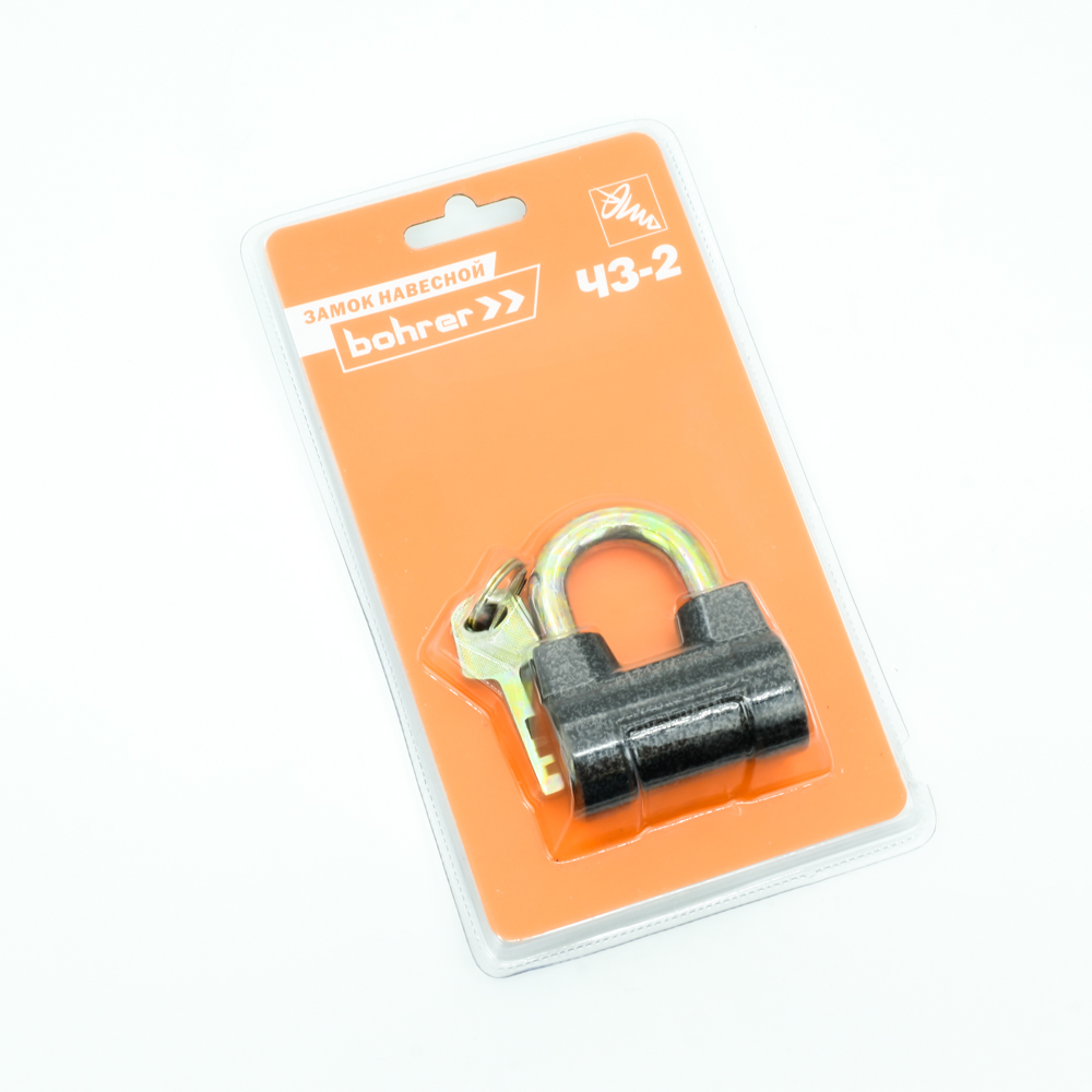 Замок Bohrer навесной ЧЗ-2 (дужка сталь 10 мм, 3 ключа) (корпус чугун 54 мм) (блистер)