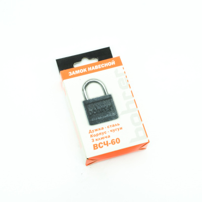 Замок навесной Bohrer ВСЧ-60 (дужка сталь, 3 ключа) (корпус чугун) (с подвес) (60/6/1)