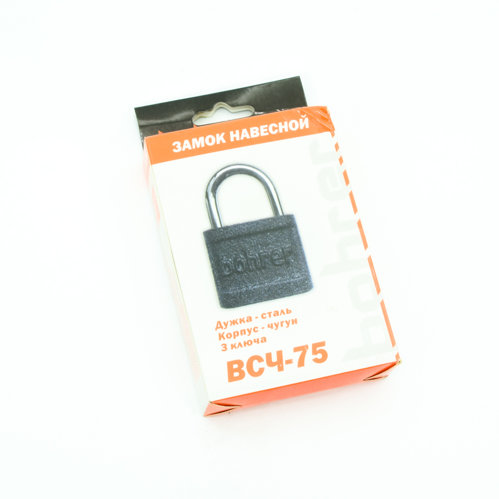 Замок навесной Bohrer ВСЧ-75 (дужка сталь, 3 ключа) (корпус чугун) (с подвес) (36/6/1)