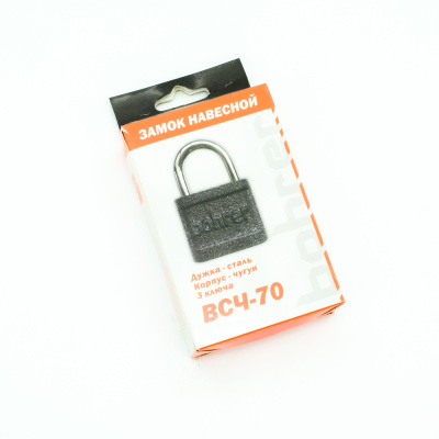 Замок навесной Bohrer ВСЧ-70 (дужка сталь, 3 ключа) (корпус чугун) (с подвес) (36/6/1)