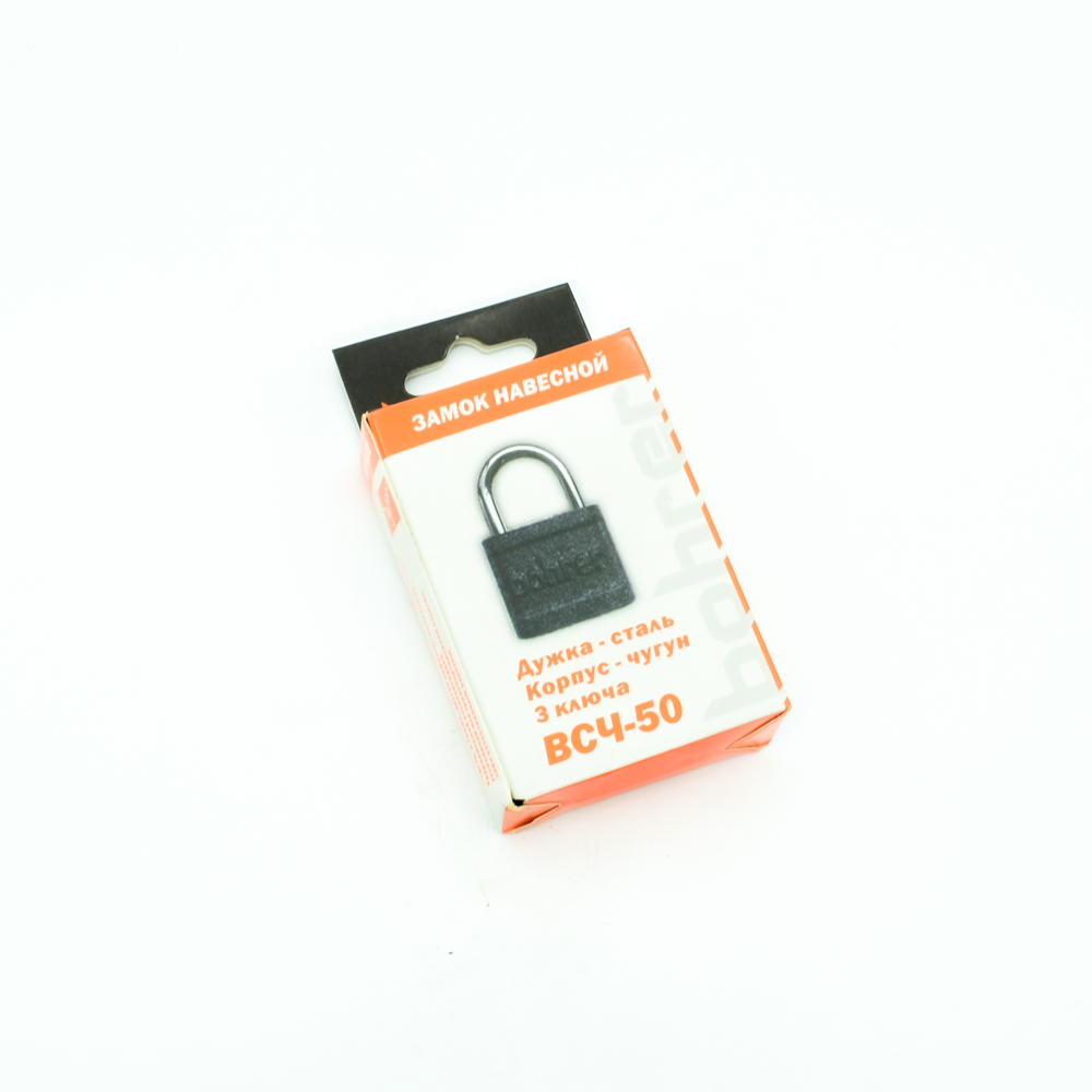 Замок навесной Bohrer ВСЧ-50 (дужка сталь, 3 ключа) (корпус чугун) (с подвес) (72/6/1)