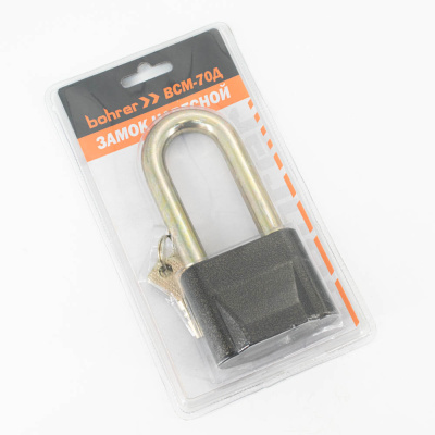 Замок навесной Bohrer ВСМ-70Д (удлинненая дужка сталь, 3 ключа) (корпус сплав) (блистер) (48/6/1)