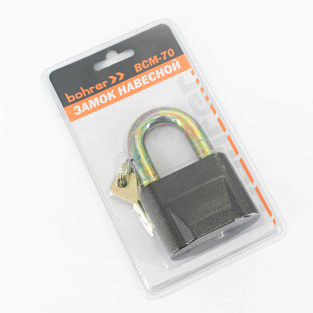Замок навесной Bohrer ВСМ-70 (дужка сталь, 3 ключа) (корпус сплав) (блистер) (48/6/1)